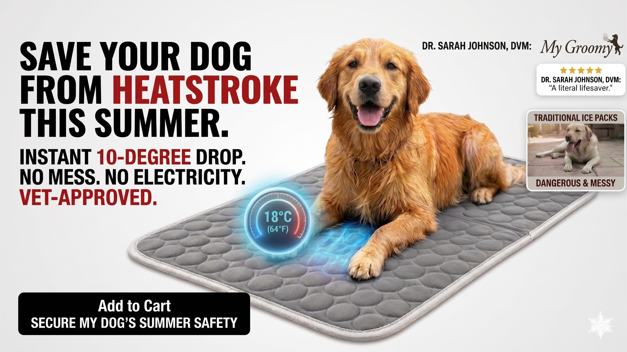 Stop the heat with the MyGroomy™ Instant-Chill Mat. Our Heat-Sync Tech requires no water or electricity; the pressure-activated gel absorbs body heat to drop your dog's temperature by 10 degrees instantly.